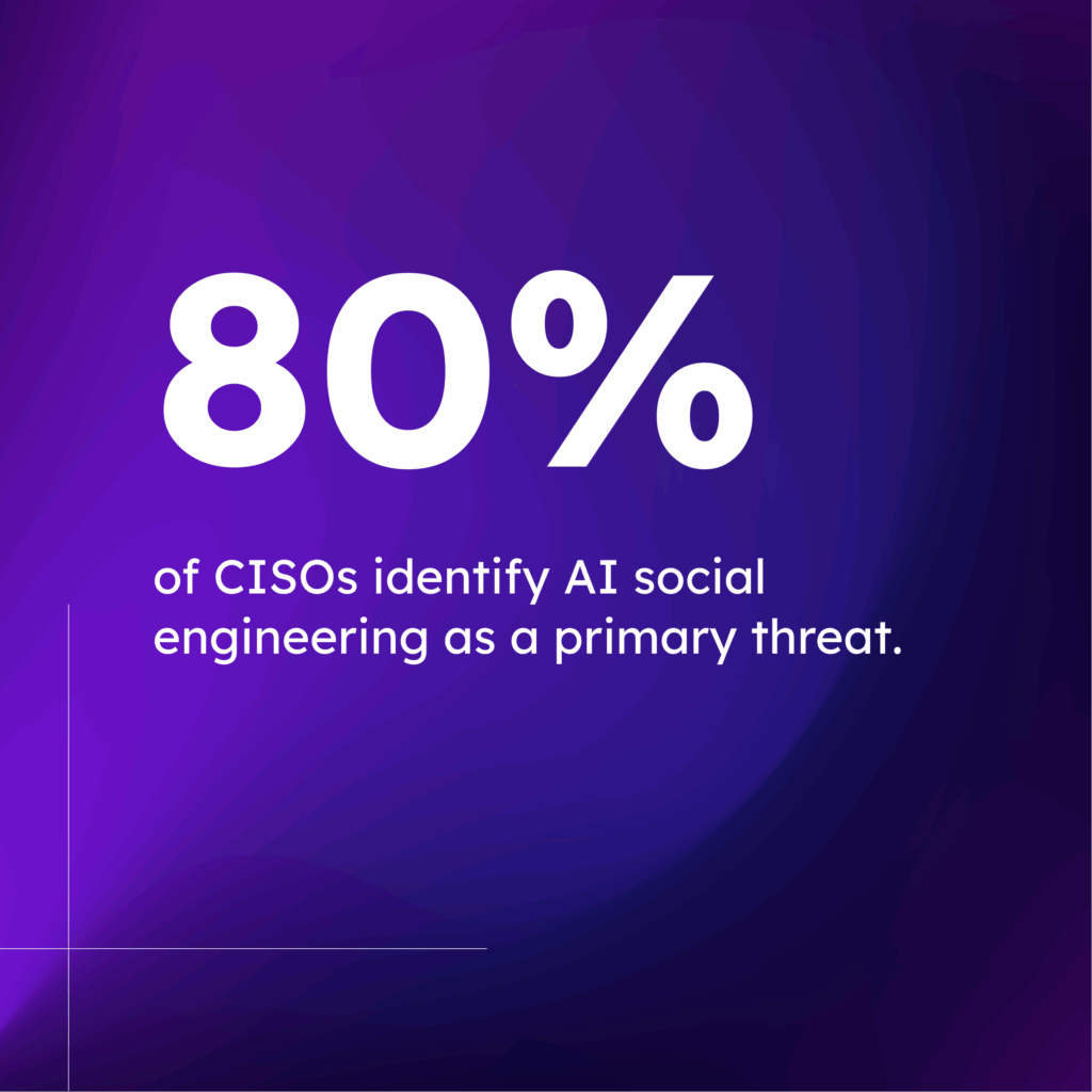 - AI-powered threat escalation: 80% of CISOs identify AI social engineering as a primary threat. In a similar vein, generative AI is driving sophisticated phishing campaigns, polymorphic malware, and hyper-realistic deepfakes, that stretch taut already thin resources.