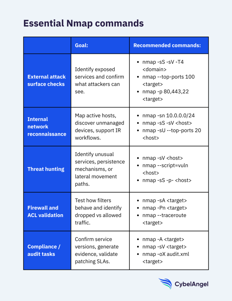 Figure 6: Some of the most essential Nmap commands. (Source: CybelAngel)
