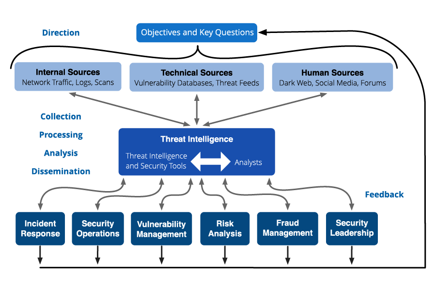 - Define assets, objectives, and scope: Determine which assets and data need protection to define the scope of intelligence efforts. From there, resources and budget can be allocated, along with Key Performance Indicators (KPIs) to define the project‘s success.